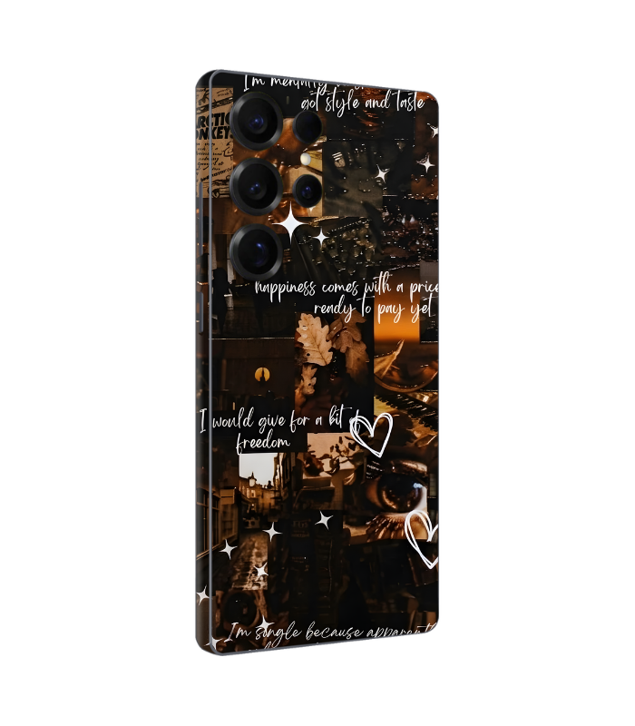 Express your unique personality with this stunning dark aesthetic collage mobile skin. Featuring a moody blend of deep sepia tones, cinematic imagery, and inspiring handwritten quotes, this mobile wrap is designed for those who love a “dark academia” or vintage vibe. It is more than just a stylish skin; it’s a curated piece of art that transforms your device into a personal mood board.
