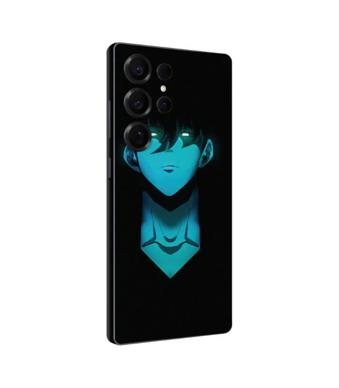 Command the shadows with our Solo Leveling Sung Jin-woo Cyan Glow mobile skin. This striking design features the Shadow Monarch in a minimalist, high-contrast aesthetic, with glowing teal accents highlighting his iconic features against a deep, matte-black finish. It’s a sophisticated and powerful look for any fan of the Solo Leveling series who wants their device to stand out with a sleek, supernatural vibe.