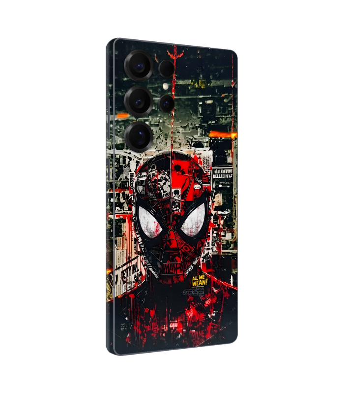 Dive into the multiverse with this high-energy, urban-inspired mobile skin. Featuring a gritty graffiti-style portrait of a legendary web-slinger, this design blends street art aesthetics with bold comic book vibes. The intricate collage of newsprint, splattered red ink, and dark textures creates a uniquely “glitchy” and modern look for your device. This mobile wrap is the perfect choice for fans who want a stylish skin that reflects a raw, cinematic edge.
